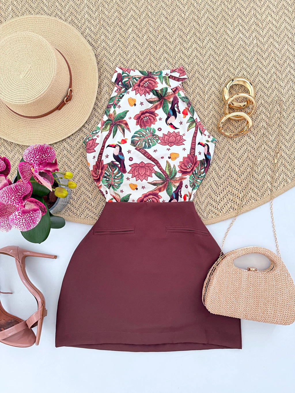 Detalhe Especial : Tecido Poliamida com Elastano,possui bojo, gola e nula manga.
