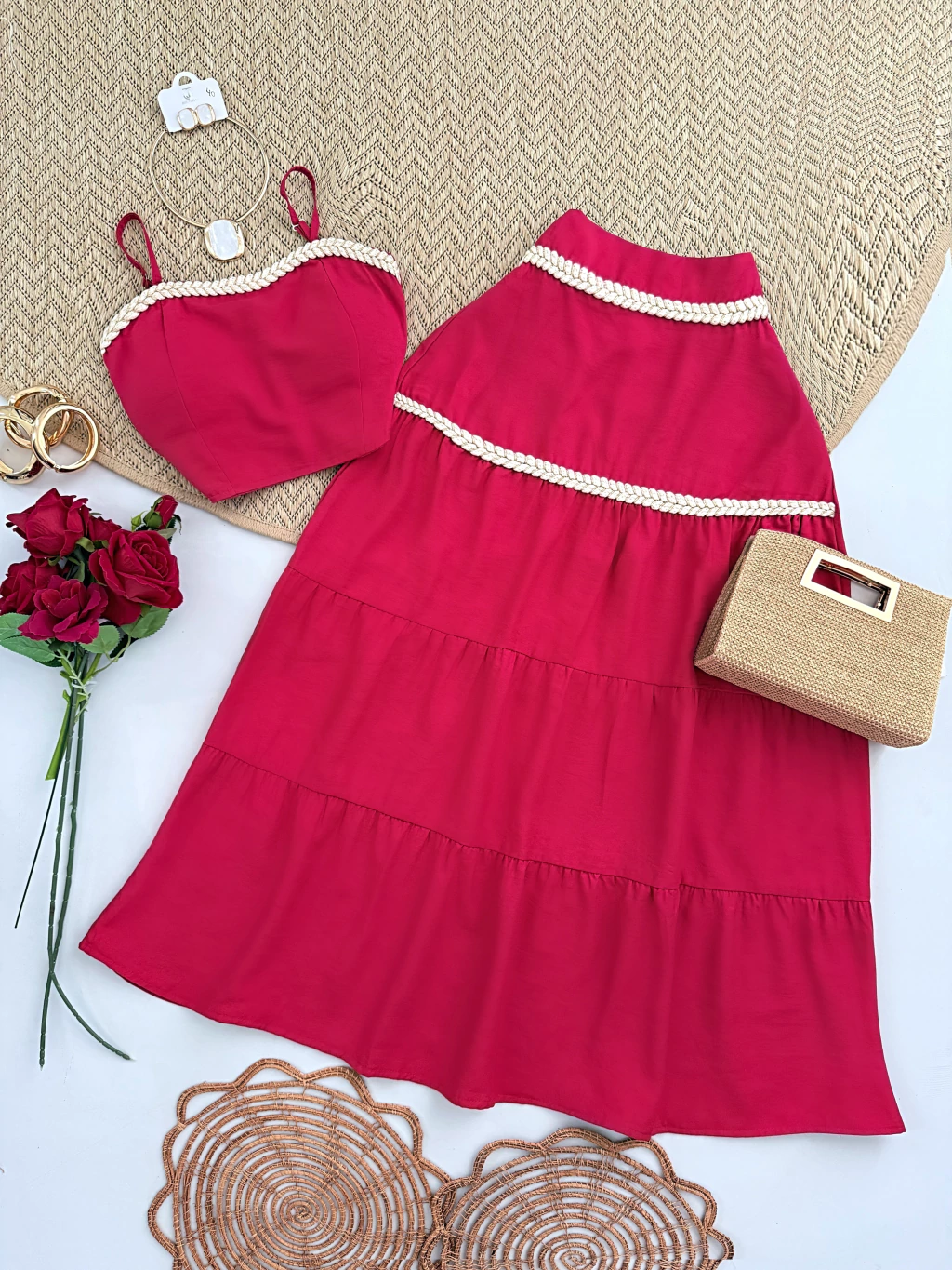 Detalhe Especial Conjunto: Conjunto Cropped possui bojo, lastex parte das costas e alças de regulável. Saia Longa ,possui elástico na cintura e possui zíper lateral.