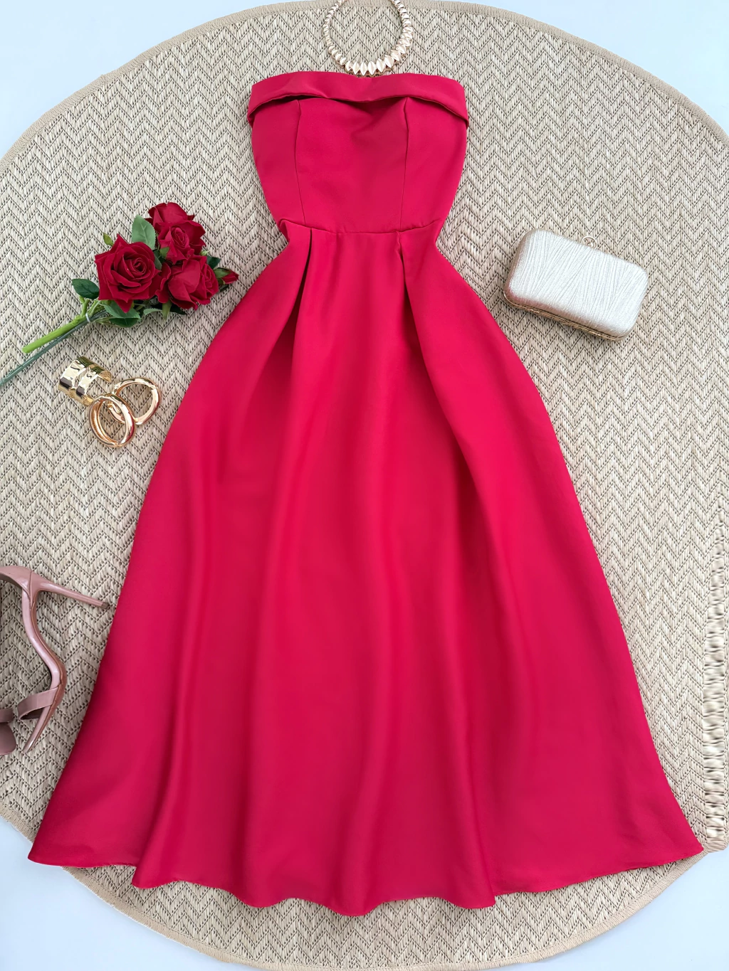 Detalhes do Vestido: Vestido Longo tomara q caia, tecido alfaiataria, possui bojo, amarração parte das costas e elástico na cintura.