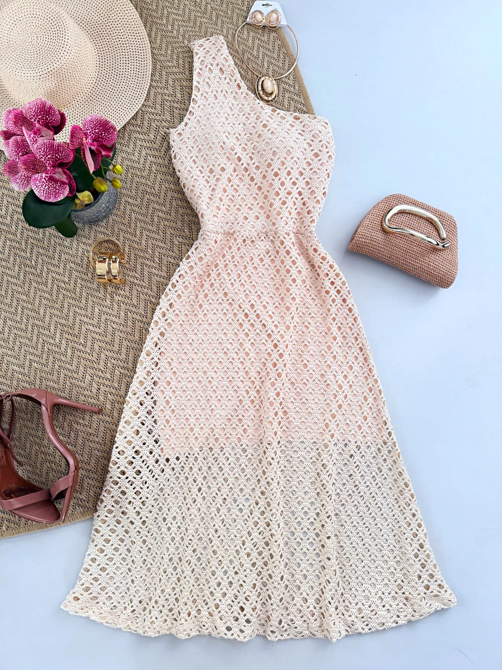 Detalhe Especial Vestido: Vestido Max Midi, tecido guipir com elastano, possui forro e bojo. Modelo nula manga.